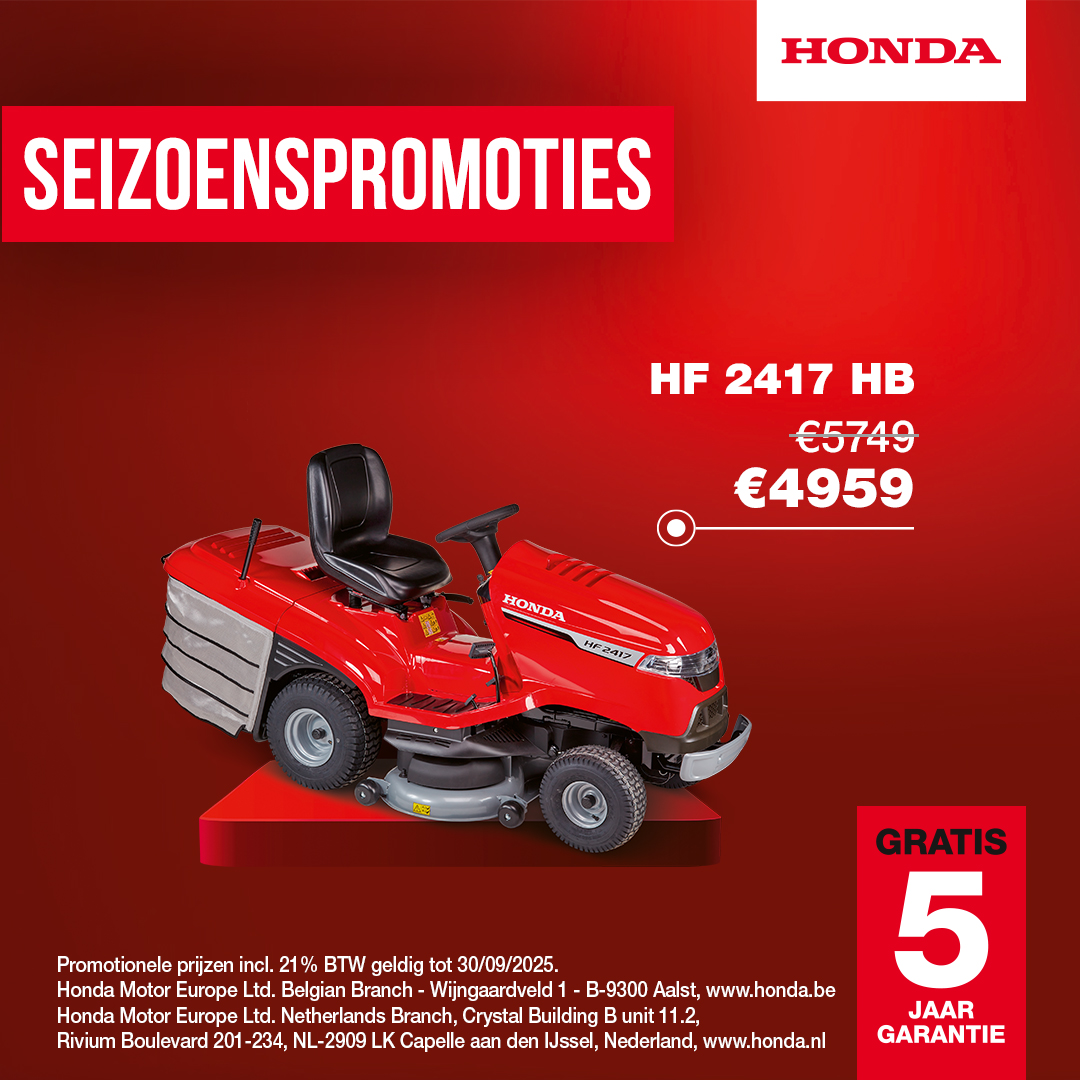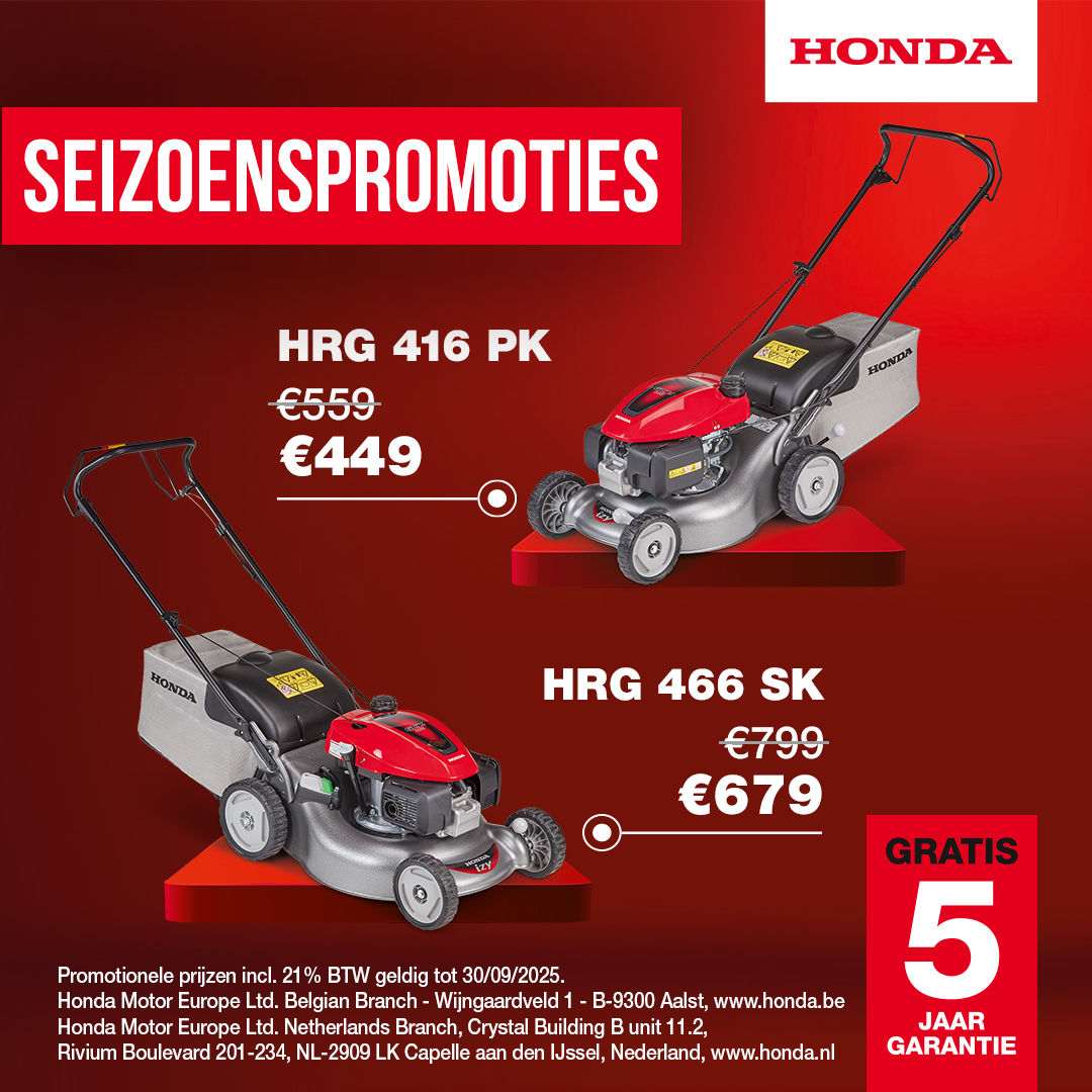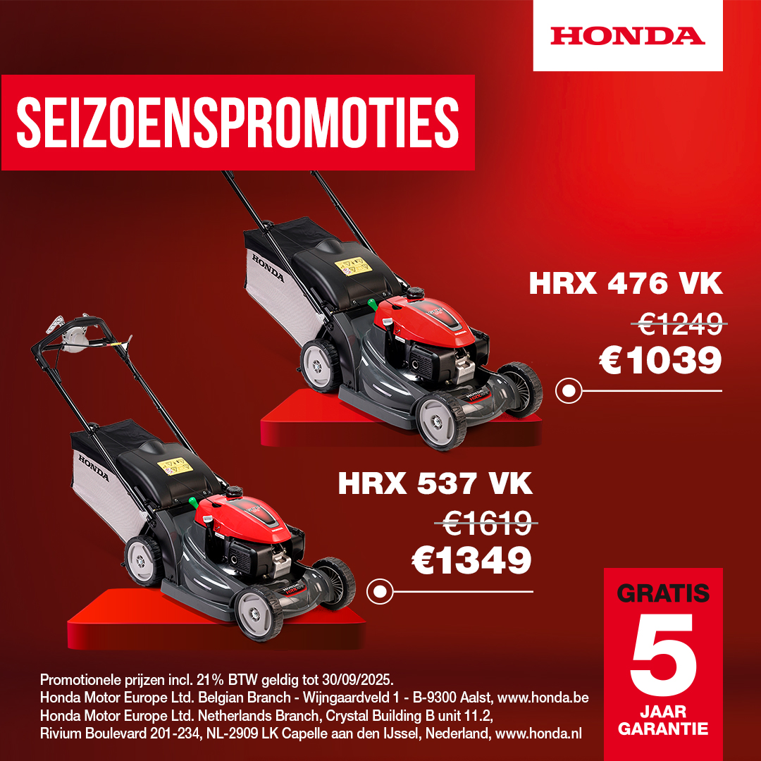 …en daarom kunt u nu bij ons profiteren van wel heel veel voordeel op de verschillende Honda tuinmachines. We hebben ze voor u op een rijtje gezet. Wilt u gebruik maken van een van deze aanbiedingen? Bezoek dan snel onze showroom en profiteer!
